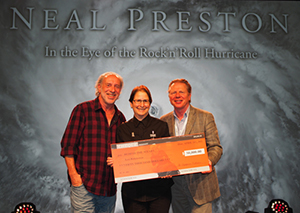 Taking the microphone, Neal told the crowd, “I’ve been on a lot of rock tours, I’ve traveled around the world more times than I can remember and I know without question- there is nobody on this planet – nobody – who works harder than a roadie on a big rock and roll tour. It’s astounding when you go to a concert and you see the stage…. how on earth does that get done? It’s these guys – who don’t get paid a lot of money, or get hardly any sleep, but with a love of the music they carry the flame and get the job done. These are the guys that really make it happen and when they are in need it’s great to have Behind the Scenes to help them because without them none of those concerts would have existed. It’s very important and very worthwhile and I truly mean that from the bottom of my heart.”